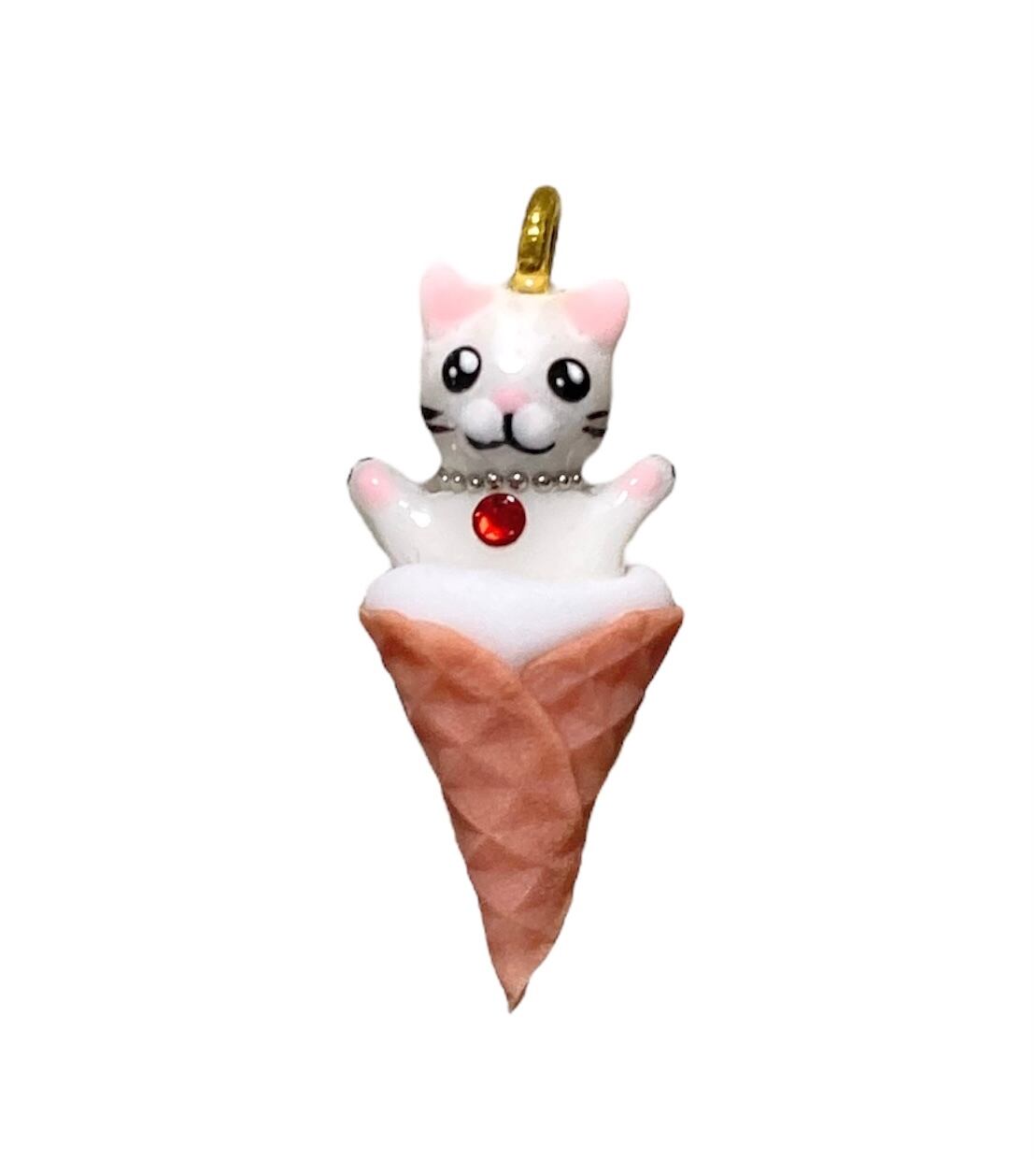 ミニチュアのバンザイしている白猫さんをソフトクリームに♡