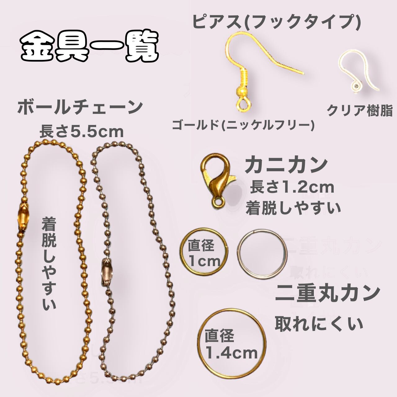 (カニカンと二重丸カン直径1.4cmはゴールドのみです。)